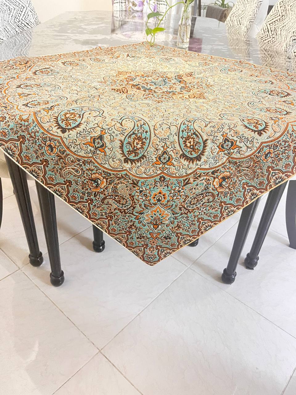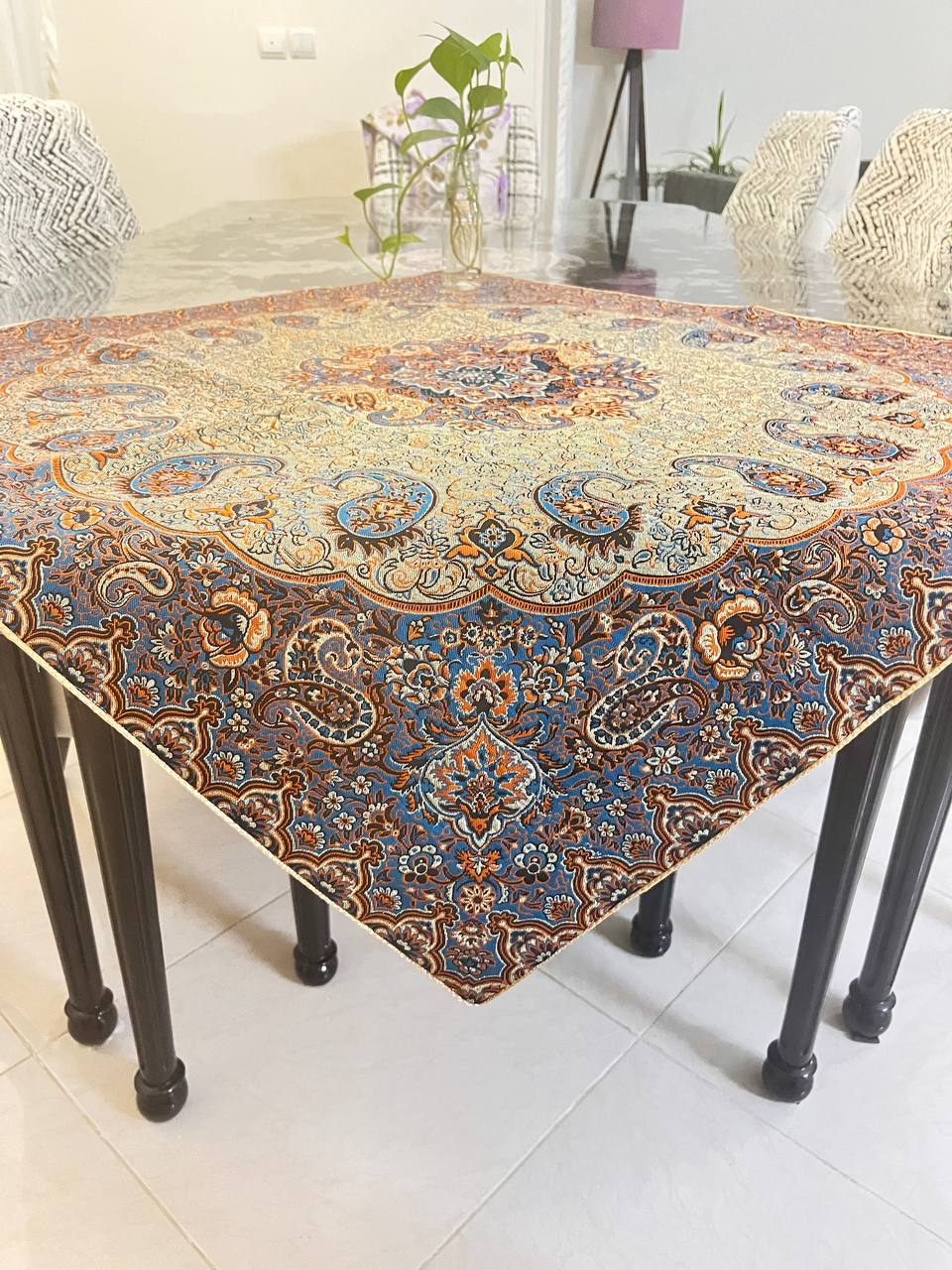 رومیزی ترمه جنس درجه یک،شناسنامه دار حک شده در خود ترمه