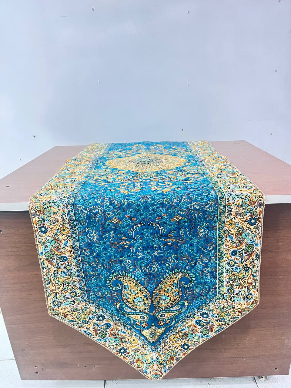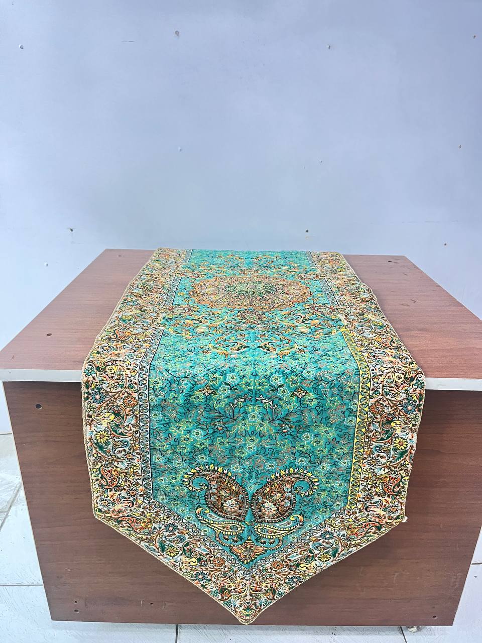 رومیزی رانر ابریشمی گل برجسته برای میز ناهار خوری و اپن و جزیره و کنسول مناسب است در سایز ۵۰در۱۴۵ و در رنگ بندی کامل