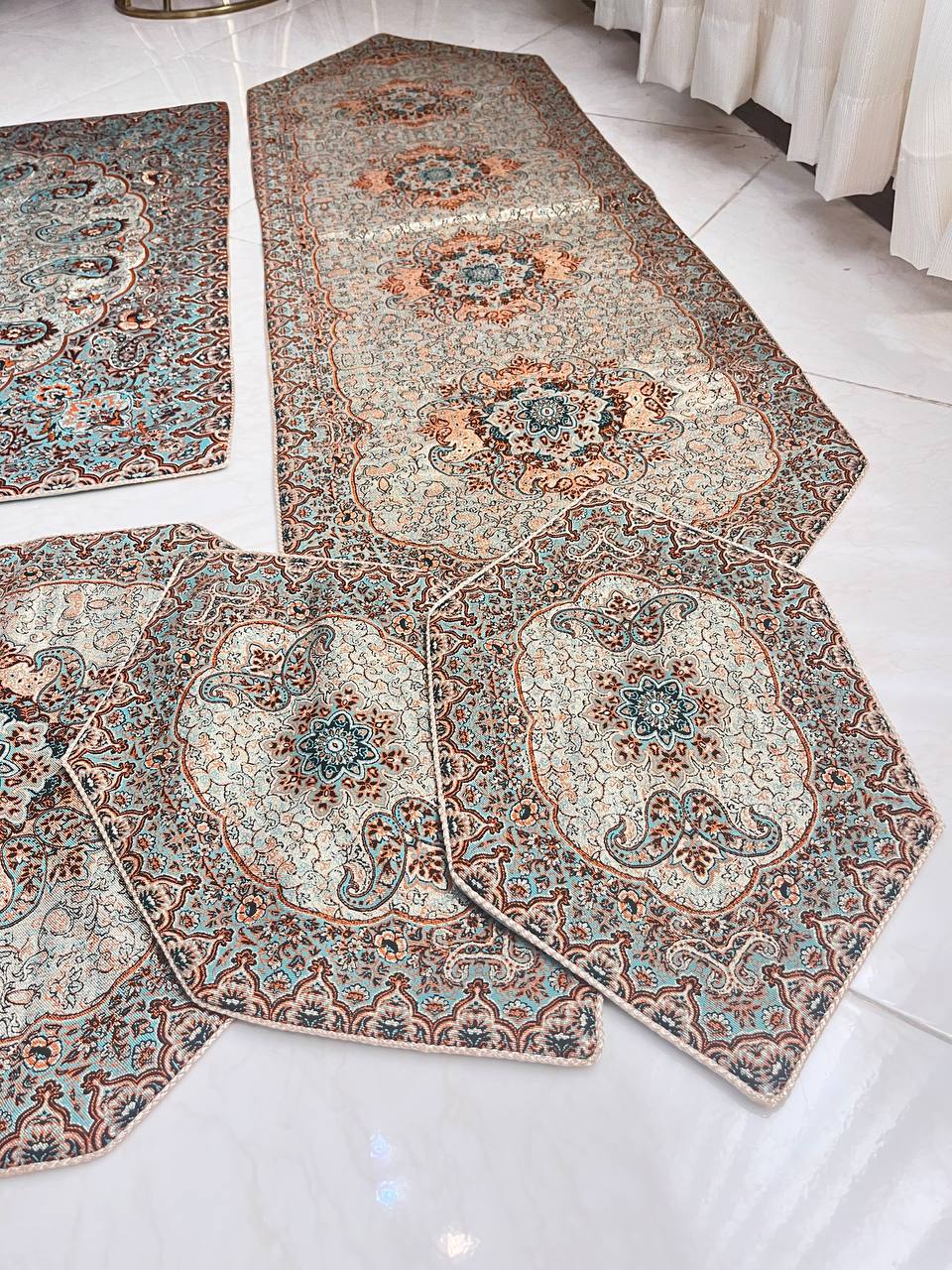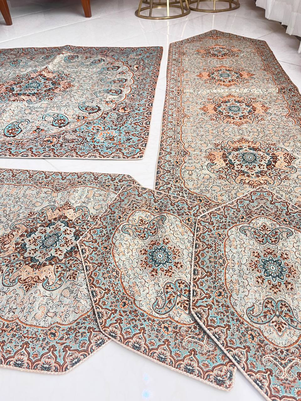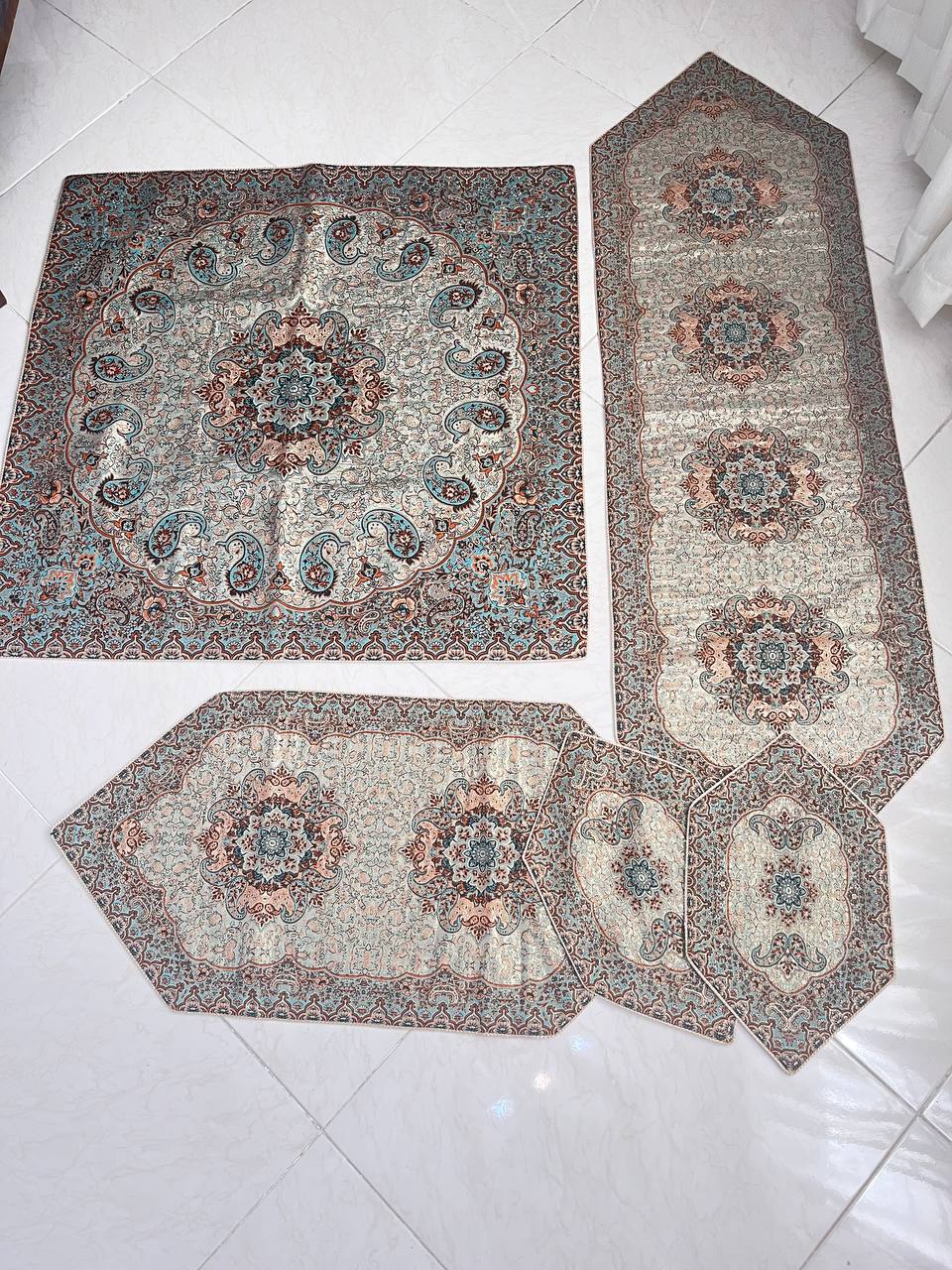 رومیزی ترمه ۵تیکه درجه یک گرم بالا دارای شناسنامه حک شده ترمه حسینی یزد
